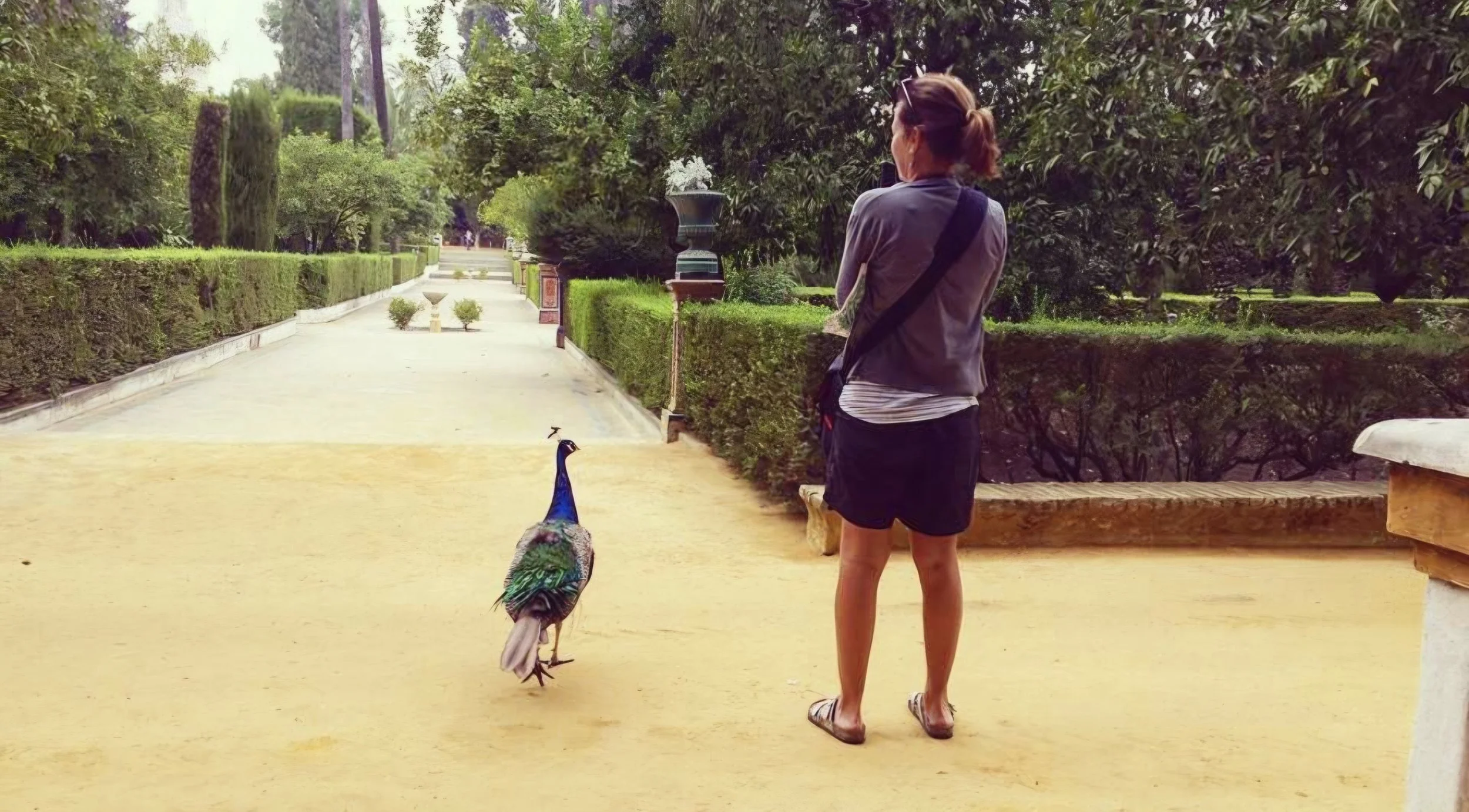 Image - Kellie enjoying the beautiful Alhambra Gardens, a few years ago. A quiet moment of feeling peace, awe and wonder, …….. with an unexpected new friend.